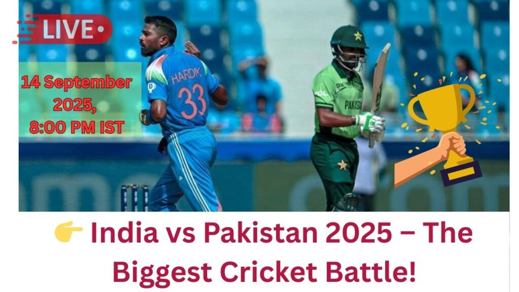 आज (14 सितंबर 2025) दुबई में खेला जा रहा Asia Cup 2025 India vs Pakistan मैच हर क्रिकेट प्रेमी के लिए रोमांचक है। जानिए इस महामुकाबले India vs Pakistan Asia Cup 2025 Live को फ्री में कानूनी तरीके से कैसे देखें, कौन-से खिलाड़ी होंगे स्टार, और पिच तथा वेदर रिपोर्ट कैसी है। पूरा मैच प्रीव्यू और खिलाड़ियों के अपडेट्स इस ब्लॉग में पढ़ें।